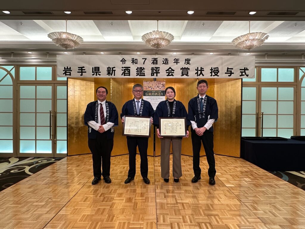 このたび、当蔵出品の「純米大吟醸 菊の司 結の香仕込」が昨年に引き続き、令和7酒造年度岩手県新酒鑑評会において岩手県知事賞第三位を受賞いたしました。